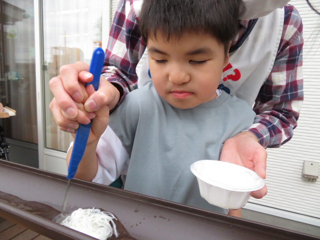 少し季節はずれですが…、流しそうめん大会を行いました!