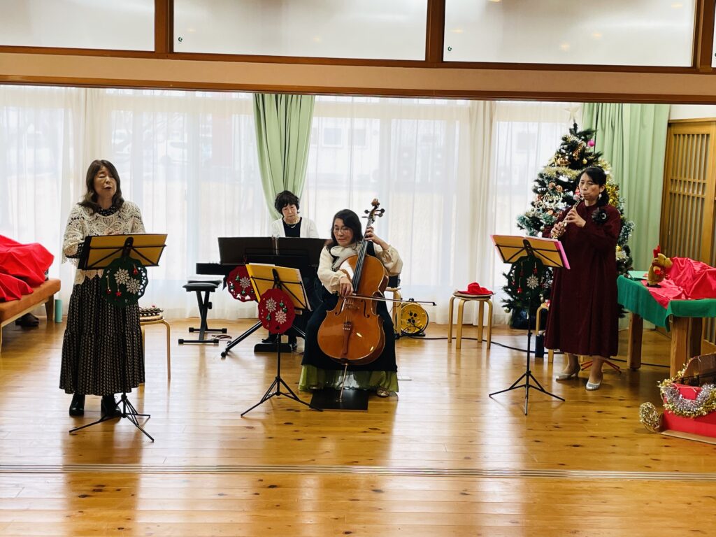 素敵な音色にご利用者様、スタッフ共に癒されました。途中でサンタさんとトナカイも登場し、楽しいクリスマスとなりました。