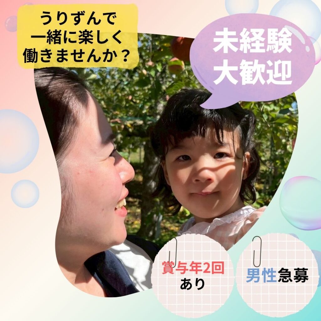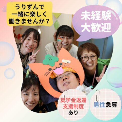 ご利用者様と一緒に楽しく遊び、楽しく過ごし、日々学びの多いうりずんで一緒に働きませんか?